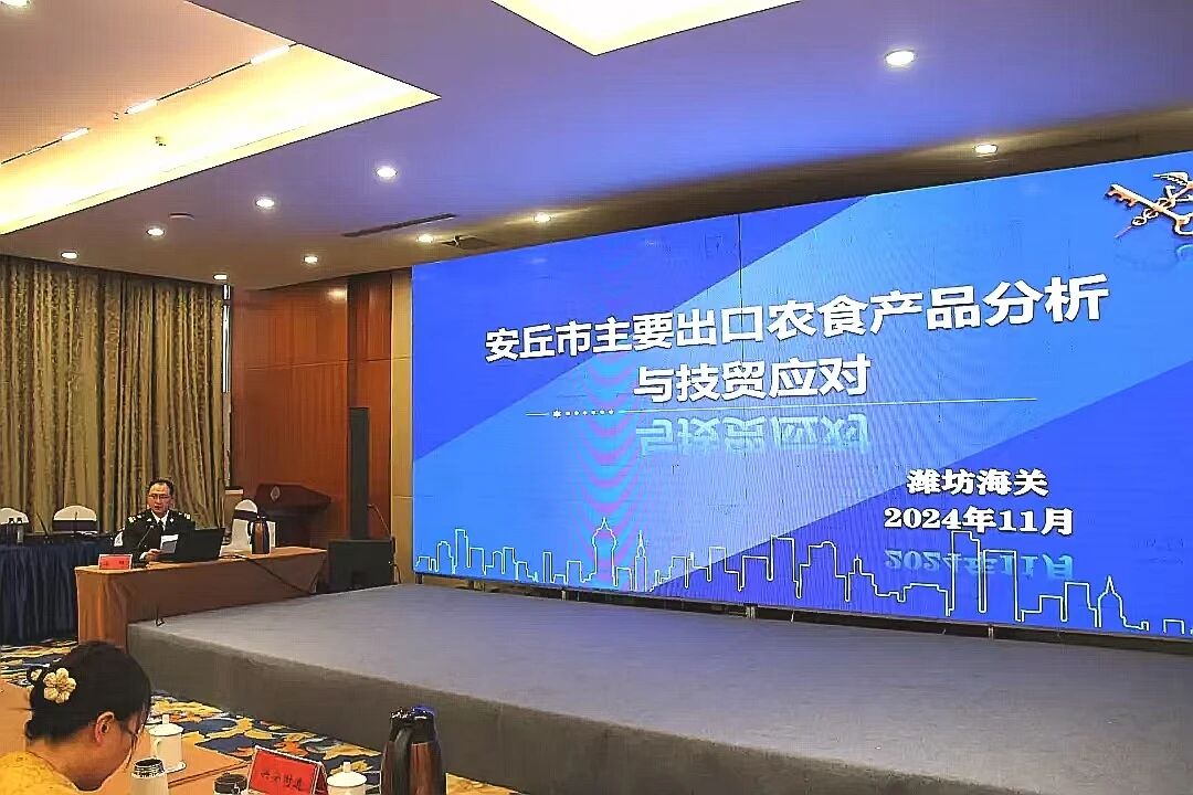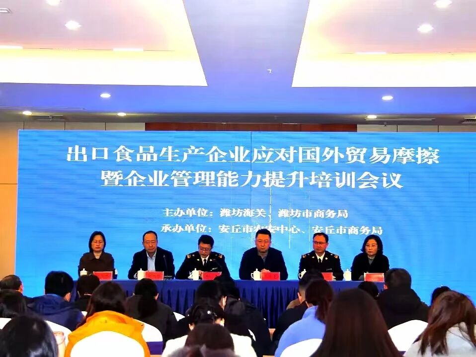 11月28日,潍坊海关联合潍坊市商务局在安丘举办出口食品生产企业应对国外贸易摩擦暨企业管理能力提升培训会议,各县市区出口食品生产企业及相关部门负责人共120人参加培训。